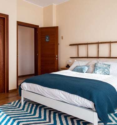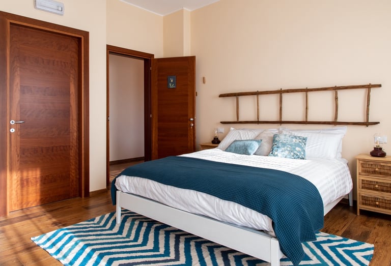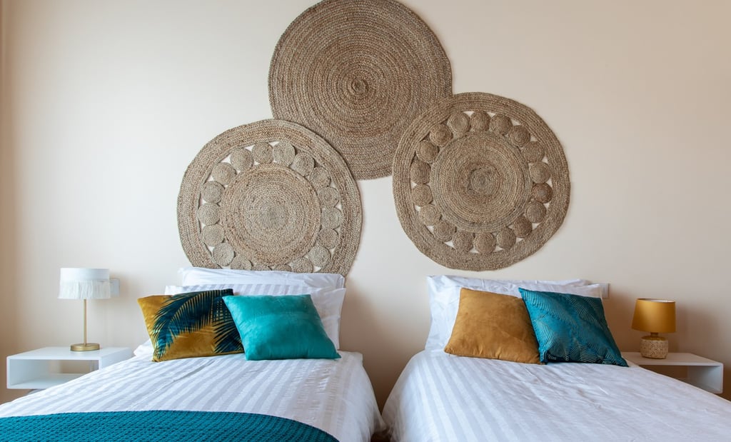 Option tête de lit géométrique : choix du papier peint et couleur à définir ensemble.