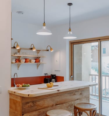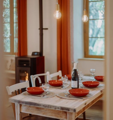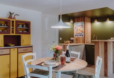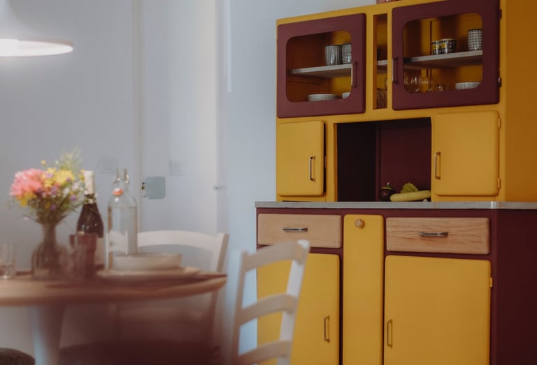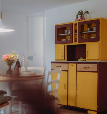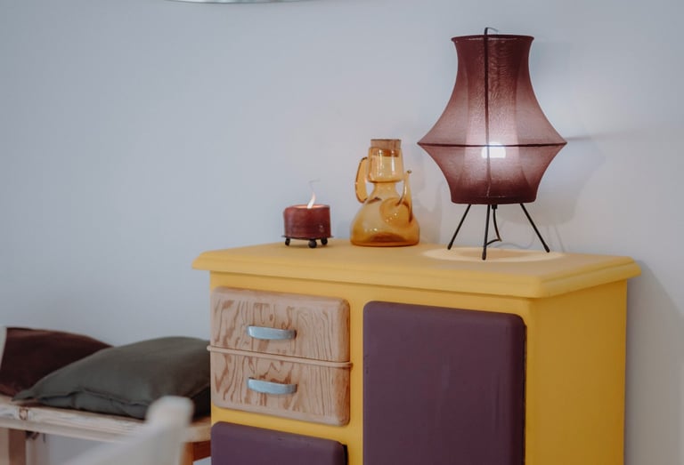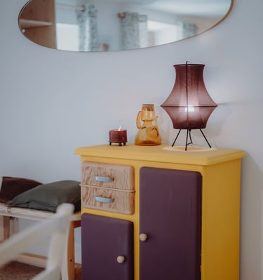 Je gère l'intégralité de votre projet pour vous garantir un résultat cohérent, durable et parfaitement aligné sur l'esprit bohème-rétro-éclectique de l'atelier Dhama. Création du book déco et sélections des matériaux, suivi des commandes, gestion des relations avec les artisans, suivi du chantier, respect du budget et des délais établis et mise en place de la décoration finale et stylisme pour assurer l'impact visuel recherché.
