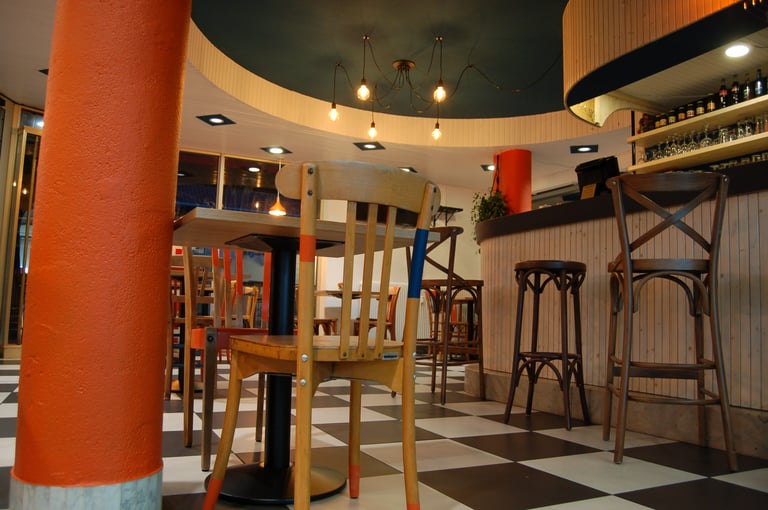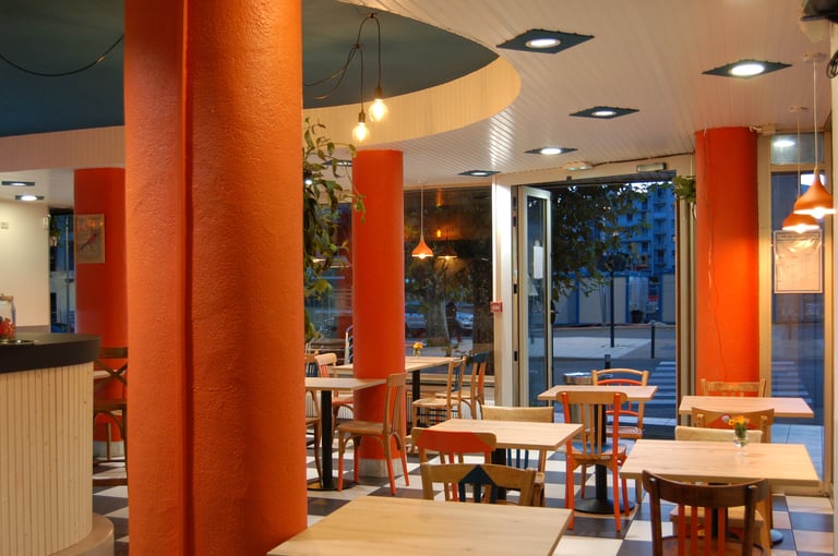 Pour ce bar situé en face de la gare, l'objectif était double: transformer un lieu de passage en un point focal chaleureux et accueillant, attirer une nouvelle clientèle plus sensible au design et à l'ambiance et faire évoluer le bar en une brasserie.