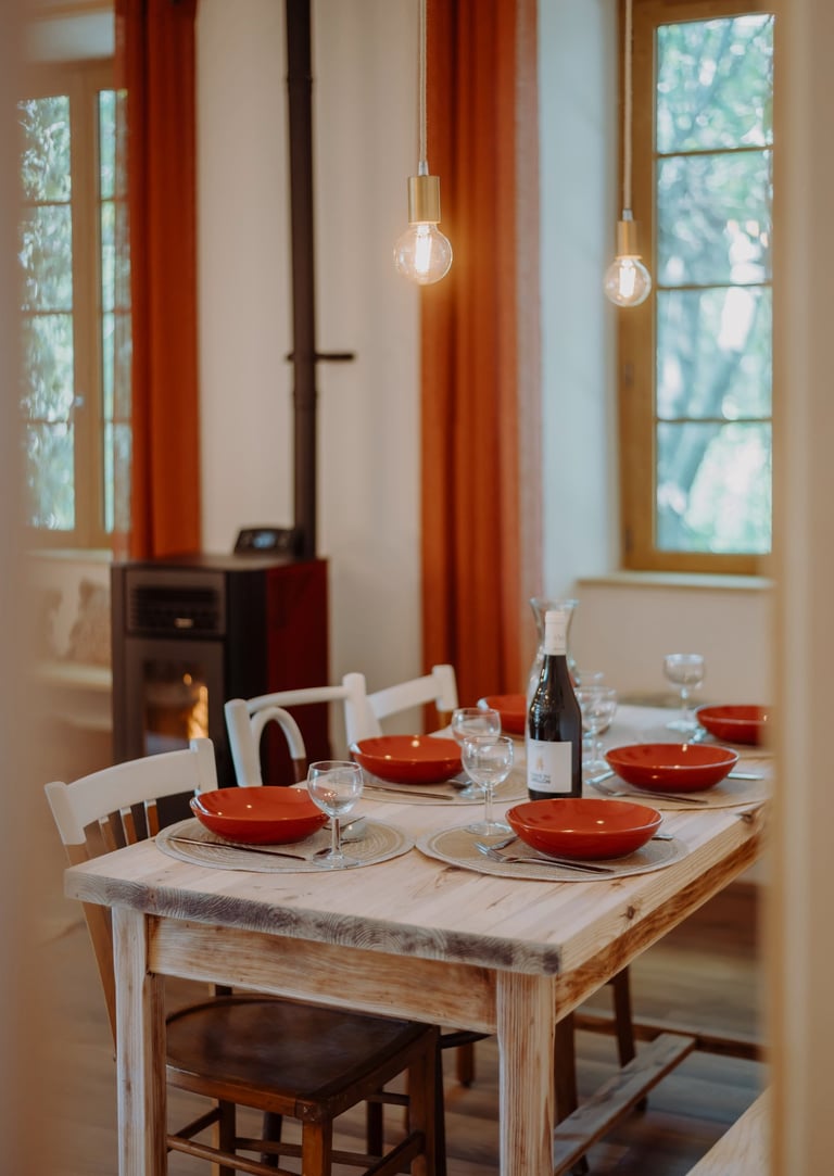 Luminaires choisis avec soin pour une atmosphère intime et cosy.