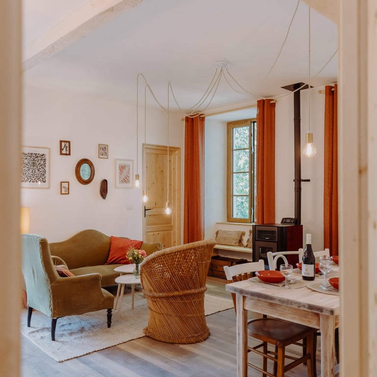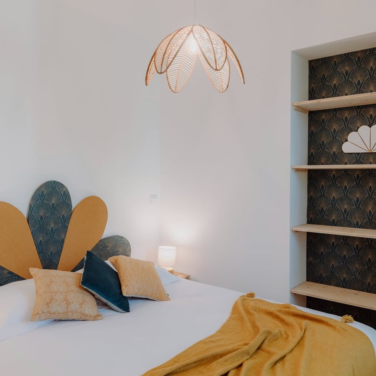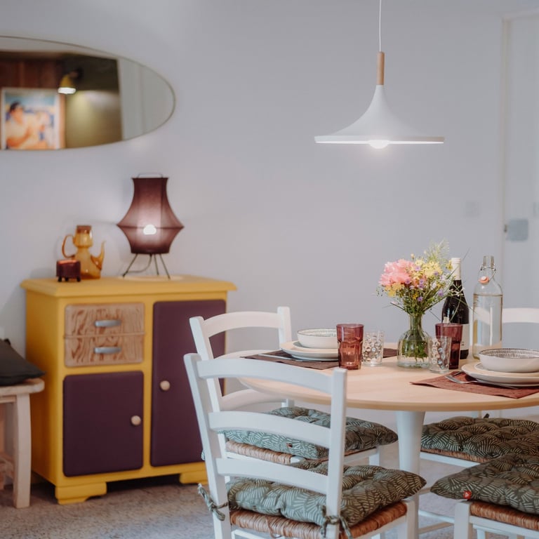 Luminaires choisis avec soin pour une atmosphère intime et cosy.