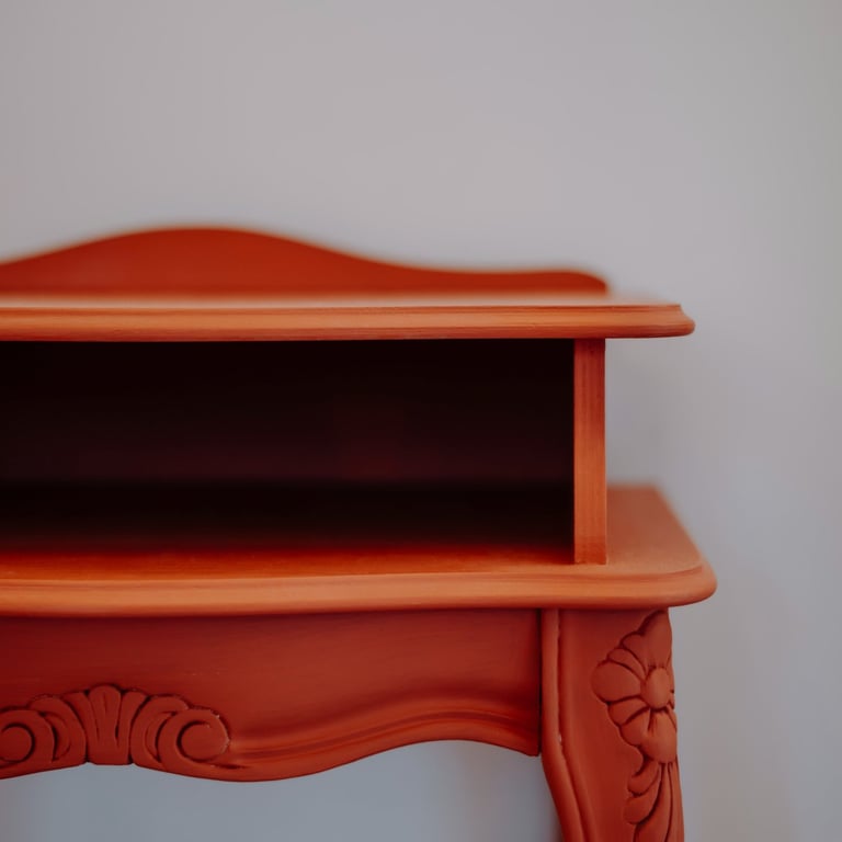 Couleurs: jeu de contraste entre l'orange: enthousiasme, joie et convivialité, le bleu canard pour l'apaisement, la sérénité et la couleur brique pour le coté enveloppant et réconfortant.